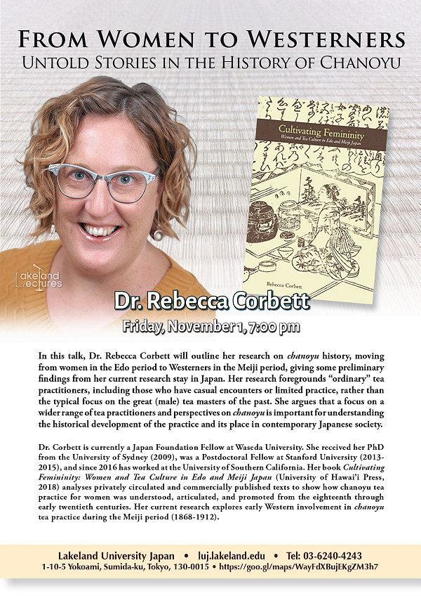 “From Women to Westerners: Untold Stories in the History of Chanoyu”, presented by Dr. Rebecca Corbett