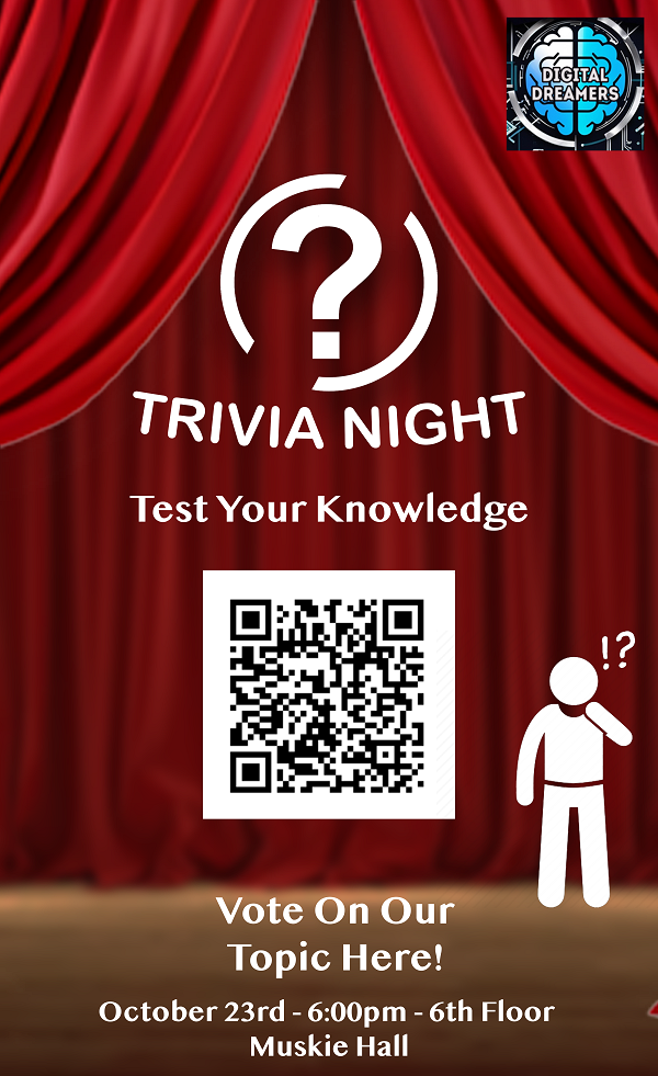 The Digital Dreamers Club is excited to invite you to our upcoming Trivia Night on October 23rd, and we need your help to choose the theme!
